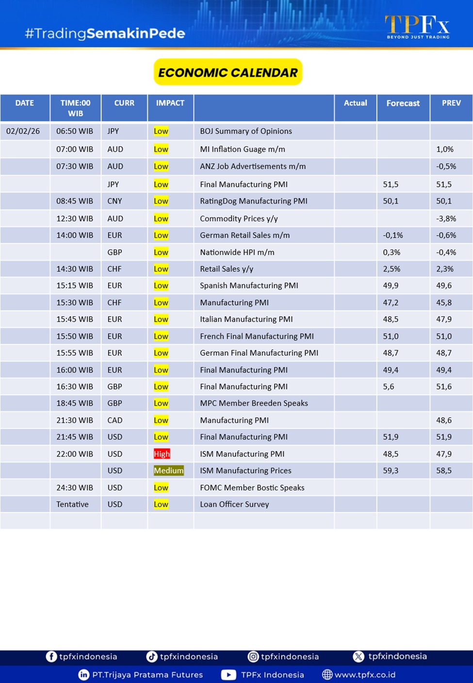 Poundsterling terkoreksi tajam pada perdagangan Jumat kemarin. Setelah rally panjang dalam sepekan terakhir Pounds akhirnya tertekan turun. Tekanan ini terjadi setelah Trump menetapkan Kevin Warsh ditunjuk sebagai ketua the Fed untuk menggantikan Jerome Powell di masa jabatan berikutnya. Kevin Warsh dipersepsikan mendukung suku bunga yang lebih rendah, namun tetap menjaga pendekatan kebijakan yang disiplin. Pasar menilai pilihan ini relatif aman karena tidak mengarah pada pelonggaran agresif yang berisiko melemahkan independensi Bank Sentral. Indeks Dollar menguat sebesar 0,79% ke level 96,93. GBP masih berpotensi untuk melemah pada perdagangan hari ini, mengingat aksi jual Dollar dalam satu pekan terakhir mulai pulih kembali.