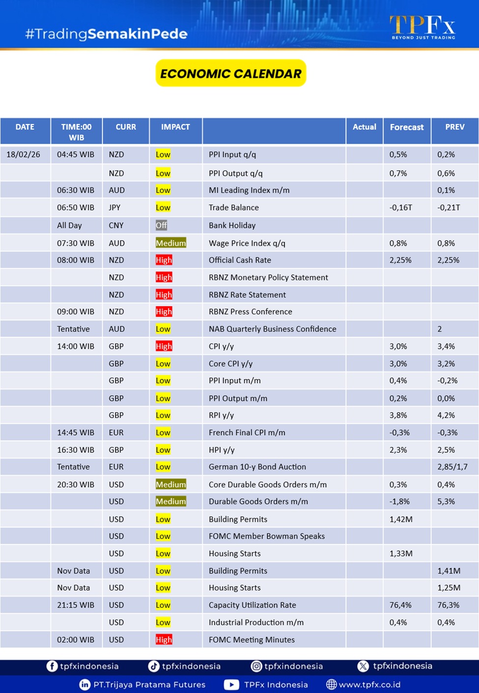 Tekanan terbatas dan sementara nampaknya melanda pergerakan mata uang Dollar Australia terhadap mata uang Greenback. Penyebabnya karena risalah dari Reserve Bank of Australia tidak memberikan komitmen terhadap jalur suku bunga yang pasti dan menekankan bahwa keputusan di masa mendatang akan bergantung pada data yang masuk dan keseimbangan risiko yang terus berkembang. Dewan tersebut menekankan bahwa kenaikan suku bunga acuan baru-baru ini diperlukan, dengan mencatat bahwa baik inflasi maupun risiko pasar tenaga kerja telah bergeser ke arah yang lebih mengkhawatirkan. Para pembuat kebijakan menilai bahwa, tanpa pengetatan lebih lanjut, inflasi akan tetap berada di atas kisaran target bank sentral sebesar 2-3% untuk jangka waktu yang panjang. Kondisi keuangan juga menjadi fokus utama, karena telah membaik secara signifikan dalam beberapa bulan terakhir, dengan bank-bank terus memberikan pinjaman secara bebas dan pertumbuhan kredit tetap kuat. Saat ini pasar sedang menunggu data upah kuartal keempat dan angka pasar tenaga kerja bulan Januari untuk mendapatkan sinyal yang lebih jelas mengenai momentum inflasi, ketahanan lapangan kerja, dan prospek kebijakan moneter secara lebih luas.