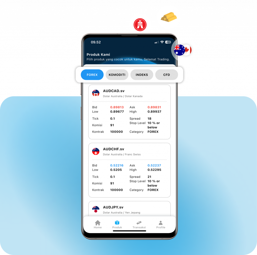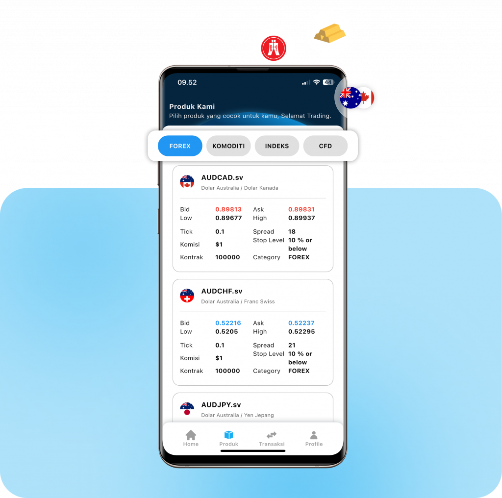 Trading emas hingga saham Amerika kini bisa kamu lakukan langsung dari genggaman tanganmu! Nikmati kemudahan bertransaksi berbagai instrumen global kapan saja dan di mana saja, dengan akses cepat, aman, dan transparan dalam satu platform.