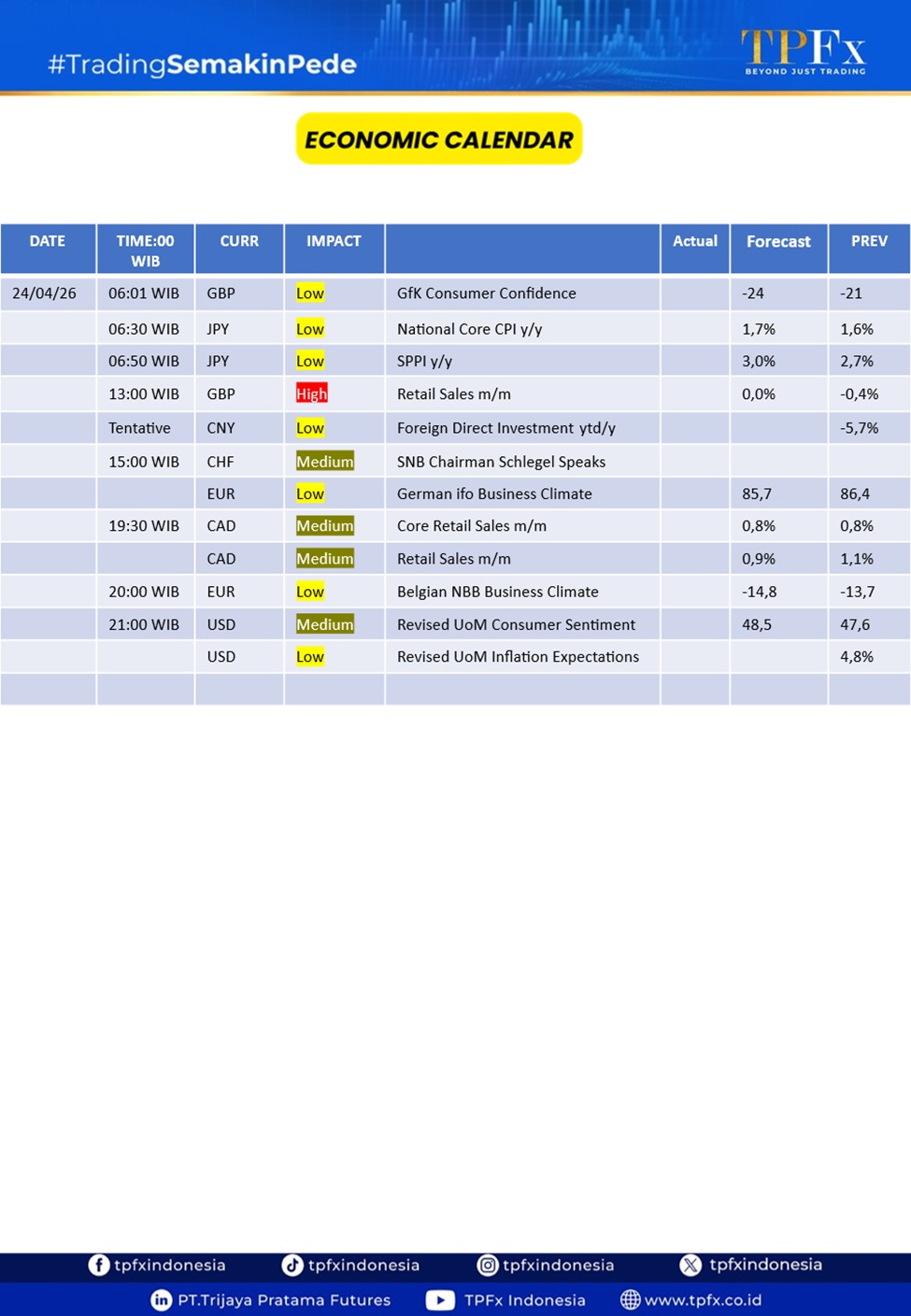 Sesuai perkiraan, pounds ditutup melemah pada perdagangan Kamis kemarin. Pelemahan mata-uang Poundsterling terjadi di tengah meningkatnya ketegangan konflik di Timur-tengah. Ketegangan ini terjadi setelah Donald Trump memperpanjang gencatan senjata tanpa batas, sementara Iran meningkatkan aktivitas militernya. Disisi lain katalis data ekonomi Inggris tidak mampu menahan pelemahan mata-uang Pounds. Disatu-sisi Klaim pengangguran AS tetap stabil, sementara aktivitas bisnis menunjukkan peningkatan. GBP masih berpotensi untuk melemah pada perdagangan hari ini yang j7ga disebabkan akan rilisnya data Retail Sales Inggris yang diperkirakan turun secara tahunan pada siang nanti.